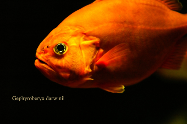 ハシキンメ学名:Gephyroberyx darwinii分類:キンメダイ目 ヒウチダイ科水深300m付近に生息。煮付けでおいしい金目鯛の仲間です。深海の圧力に負けそうにない、大きい口と発達した顎の持ち主。だいぶ涼しくなってきました。紅葉もそろそろ始ってきそうな感じであります。今年こそは養老渓谷にいかねば…Tag:Sony SonnarT135mmF1.8ZA