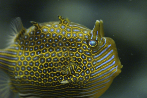 1年近く放置していたわけでして、なんとも申し訳なく。。。毎日更新!というのは無理なので、こっそり更新していきたいと思います。トラックバックがスパムでえらいことに(つД`)オルネートカウフィッシュ学名:Aracana ornata 分類:フグ目 イトマフグ科牛のように突き出た角と、ネットの模様が特徴の魚です。ハコフグの仲間はひれをパタパタさせて泳ぎます。これは、ほかの魚と違い甲羅のような硬い鱗におおわれ、体をくねらせることができないためです。